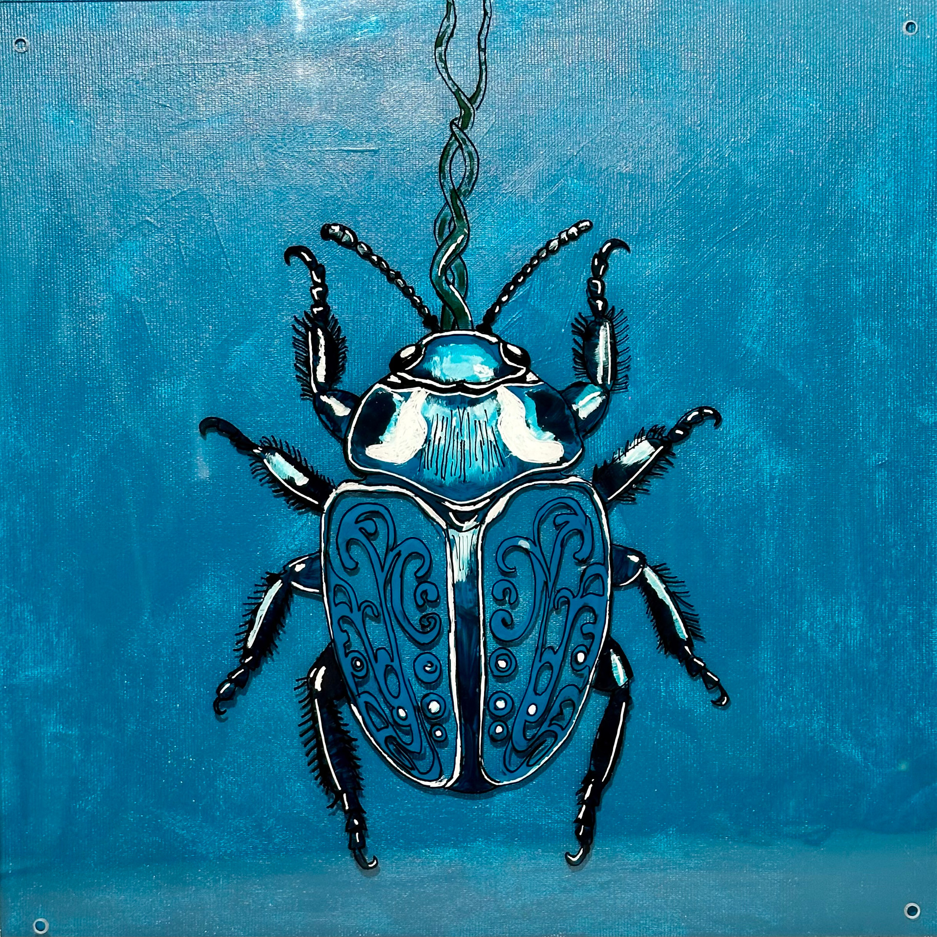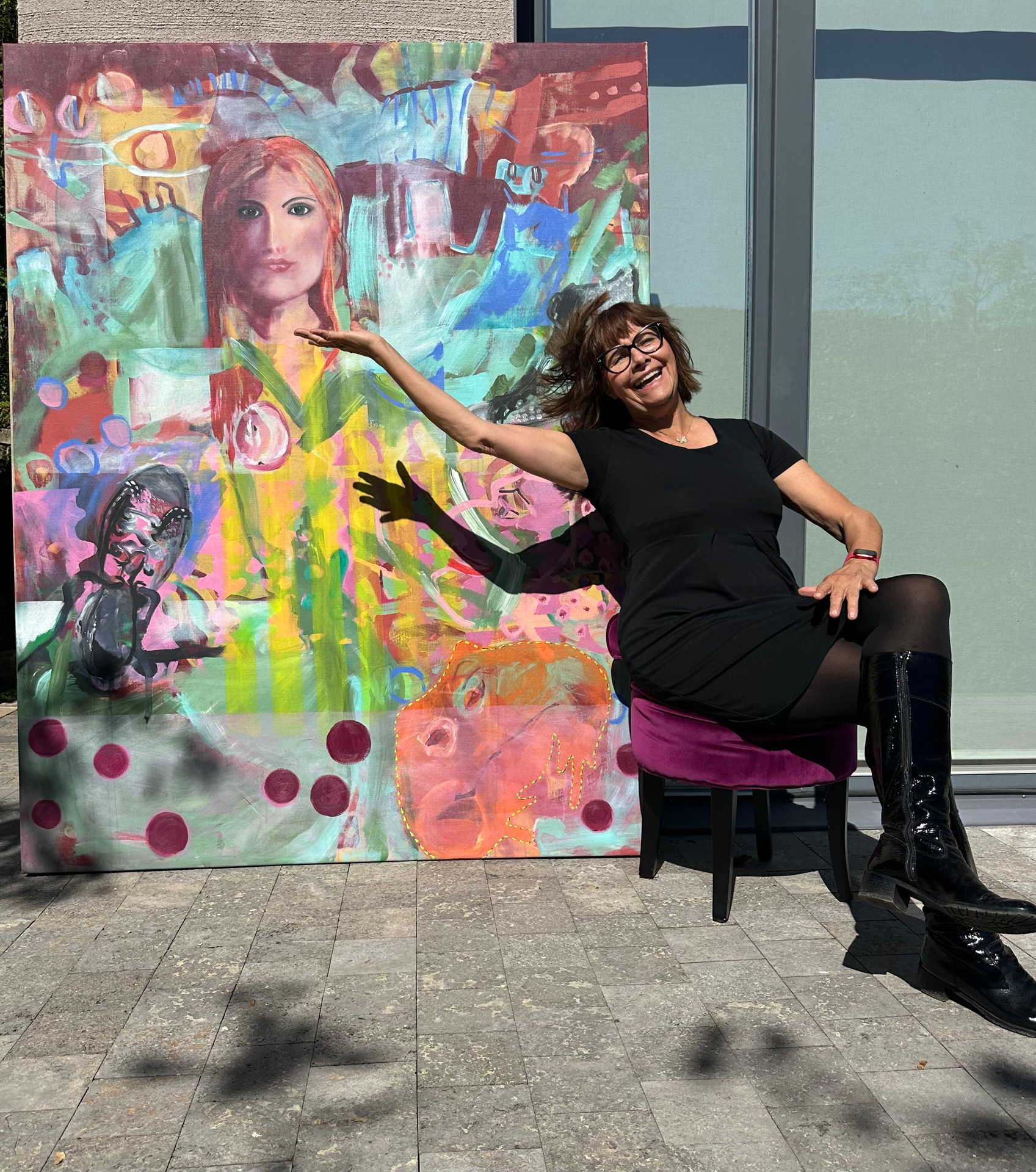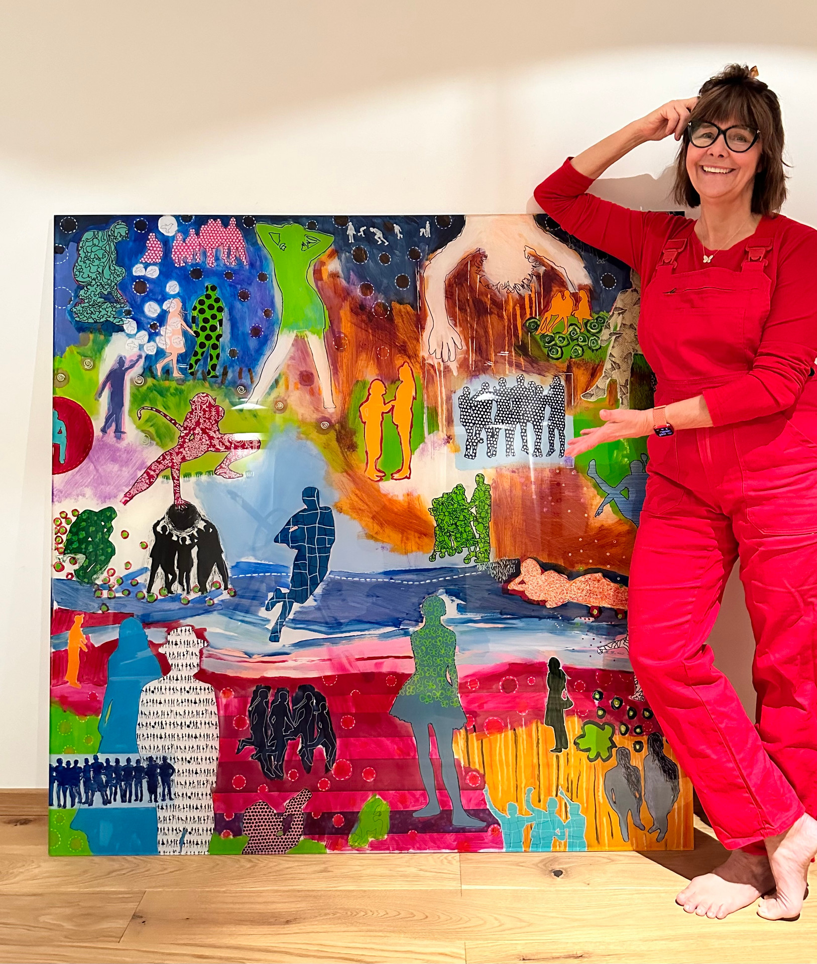 Ihre Werke entstehen fast immer als Originalarbeit auf Leinwand oder Hinterglas. Oft entwickelt sie ein Thema seriell. Es wächst, verändert sich, findet neue Richtungen. So entsteht dieser kreative Flow, von dem sie spricht, ein Zustand, in dem Zeit und Raum verschwimmen und nur noch die Kunst zählt: